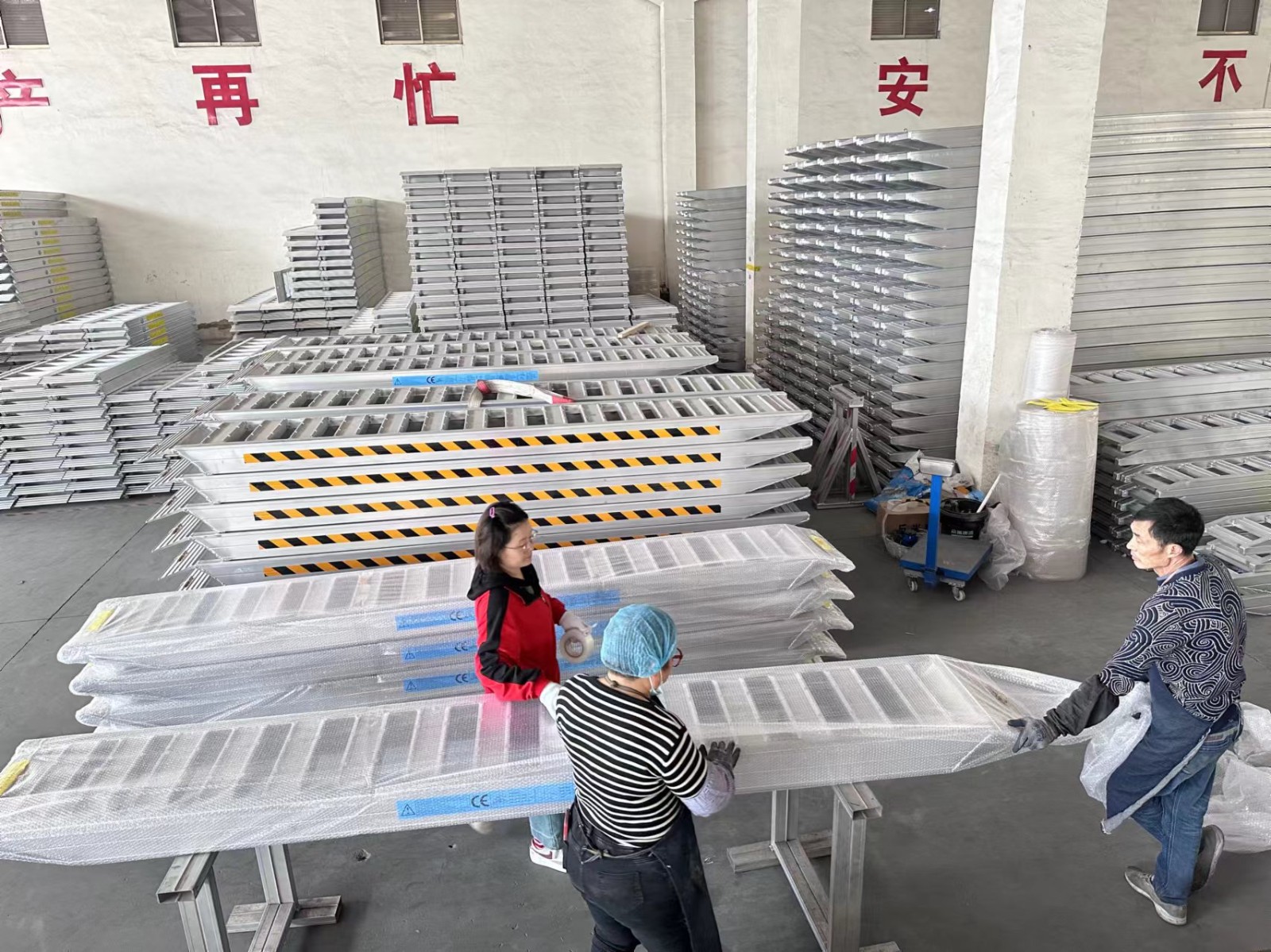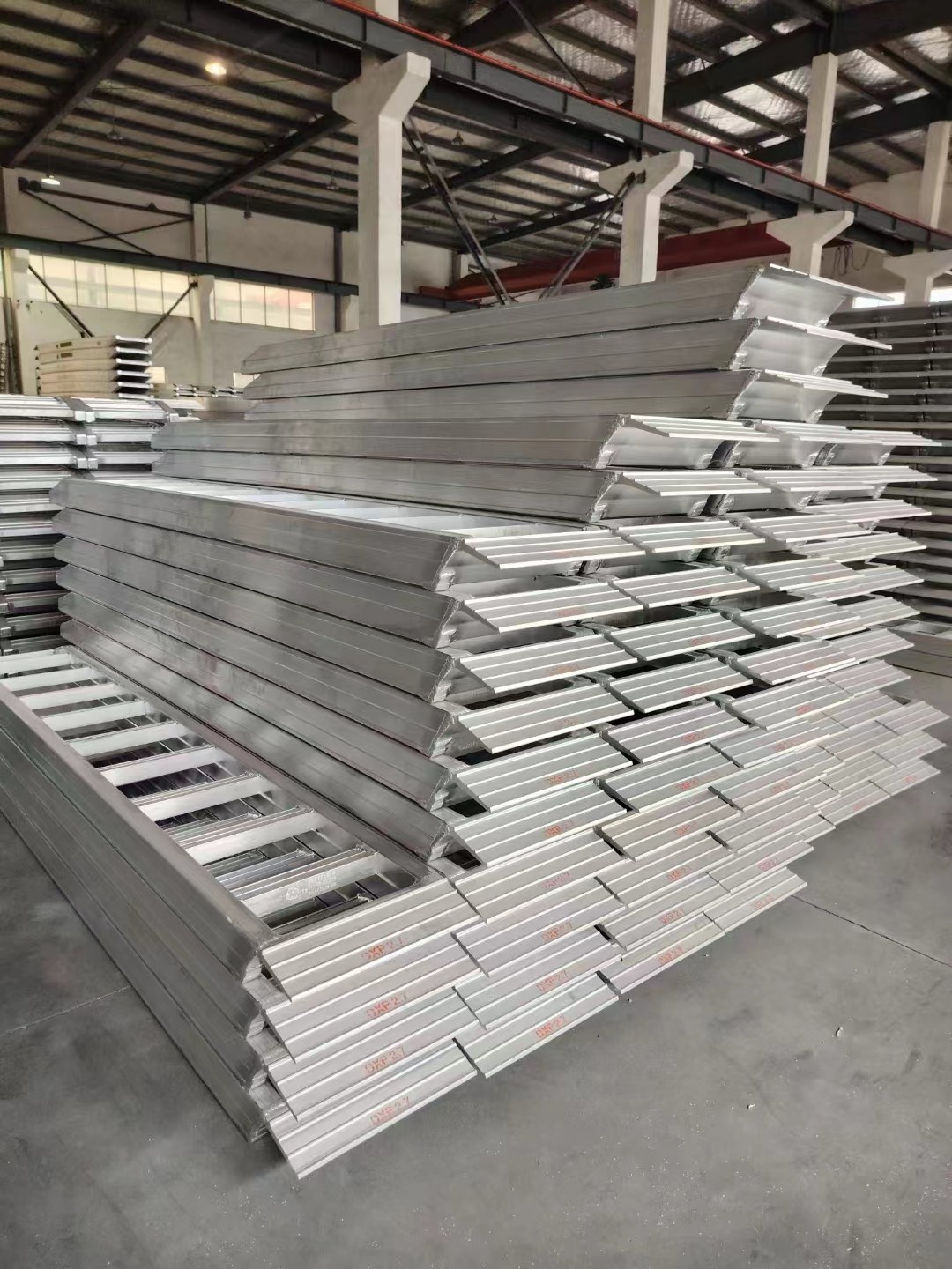The bevel bar beam type ramp for rubber track machinery which is specially designed for the rubber track machine, which plays a key anti-slip effect, and also better reduces the self-weight of the aluminum ramp to achieve the best effect of light anti-slip.